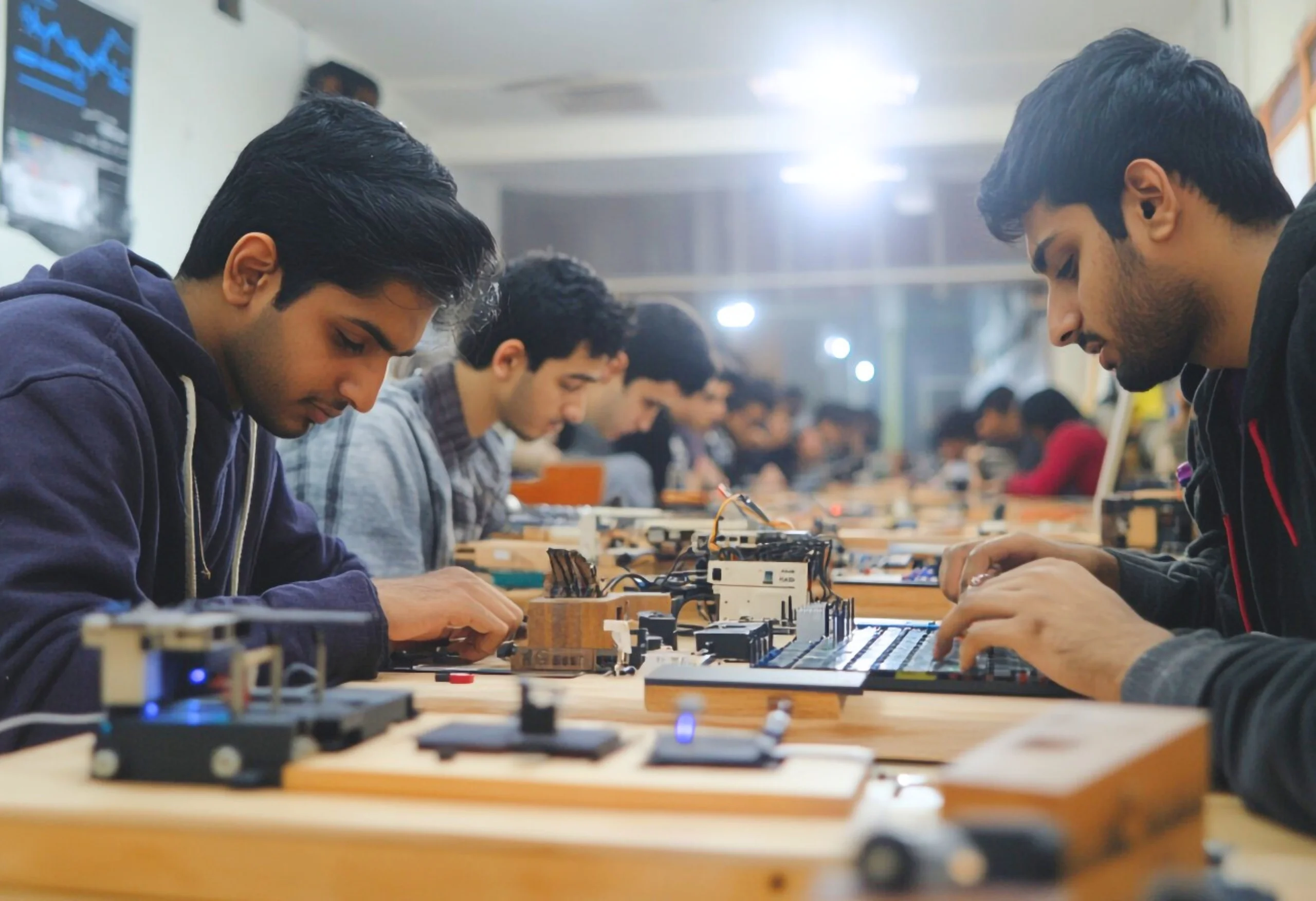 The department has highly qualified and experienced faculty members from IITs/NITs/Foreign Universities with the specialization in various areas like VLSI Design, Embedded System Design, Optical Fiber Communication, Antenna Design, Electrical Machines and Drives, Control Systems, Signal & System Processing, Artificial Intelligence & Machine Learning, Data Science, Cyber Security and Block chain. The department actively promotes participation of faculty and students for centralized research activities in the Center of Excellence. The faculty members have a large number of publications to their credit in more than 50 referred and peer-reviewed journals and are engaged in the R&D activities in the areas of Image Processing, Antenna Design, Video Processing, Robotics, AI & ML and Data Science etc.